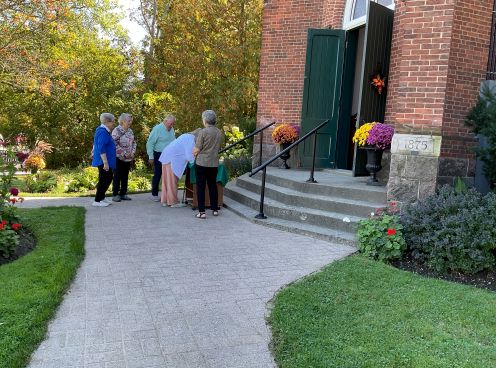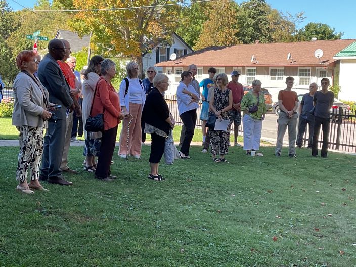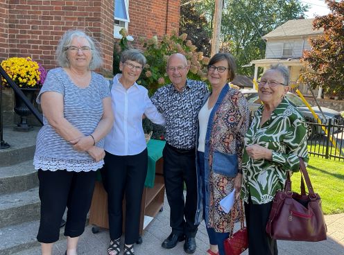 3) Dedication of the Reflection Bench, pictured are: Councillor Granville Anderson, Mayor Adrian Foster, Councillor Willie Woo, Rev. Doug Ferris and Neil Killens (member of the anniversary committee).