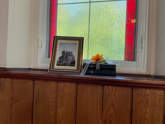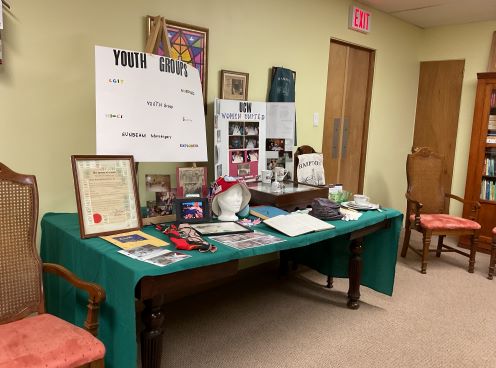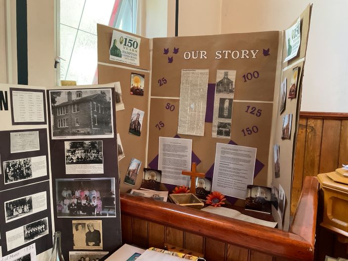 4) Slideshow below is photos and memorabilia displays which were located downstairs and in the sanctuary, along with light refreshments.
