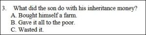 Seven questions under each heading to choose from, points 100 to 700. In our version each card asked a question and gave 3 answers to choose from. They listened to the question and the three answer choices then each team talked among themselves to decide on the correct answer, which they then wrote on their angel whiteboard (A, B, or C). Their answers were revealed once both teams were ready. (I’ve posted this lesson with printable cards at rotation.org and it can be found here.)