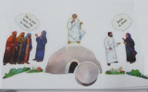 Passports where then handed out and the girls who had missed last week got caught up filling in their passports, plus this week they were given a “Jesus is Alive!” (Faith That Sticks) sticker set to create this week story scene in their passport, as well as this weeks Joy Fruit Sticker.