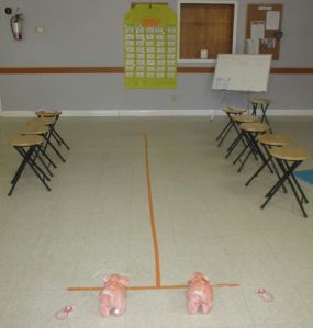 I also kept track of their points, on the white board, in case we had a tie when the pigs crossed the “Home Sweet Home” finish line.