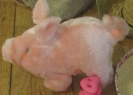If either team has the correct answer they send a team member to press their pig’s remote button, when pressed and held, the pig moves forward a few steps, stops, wiggles his tail and oinks, they are to stop after the second “oink”, and take their seat for the next question.